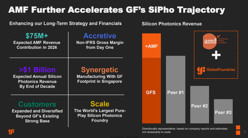 2025年11月,格芯宣布收购新加坡硅光子代工厂AMF(Advanced Micro Foundry),一举成为按营收计算的全球最大纯硅光子代工厂。